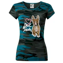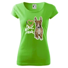 Tričko pre psíčkarov, na ktorom je nápis " I love bul terrier" je vhodný darček pre pšíčkarov, ktorí majú doma práve bull teriéra. Ukáž, že si správny psíčkar a obleč si na seba toto parádne tričko so psom.