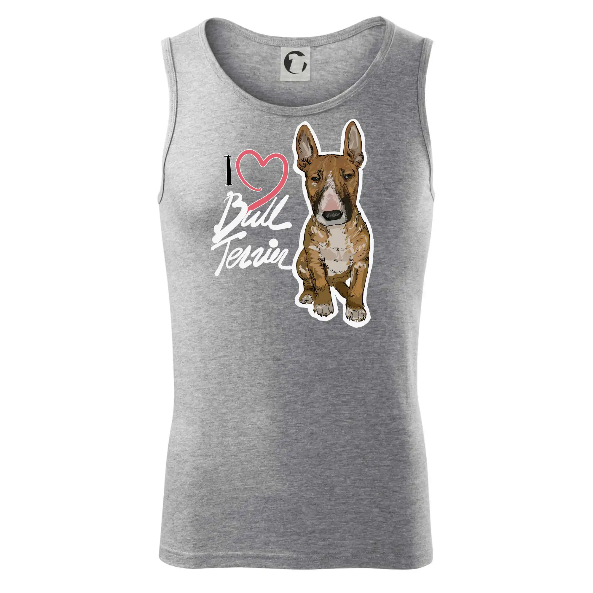 Tričko pre psíčkarov, na ktorom je nápis " I love bul terrier" je vhodný darček pre pšíčkarov, ktorí majú doma práve bull teriéra. Ukáž, že si správny psíčkar a obleč si na seba toto parádne tričko so psom.