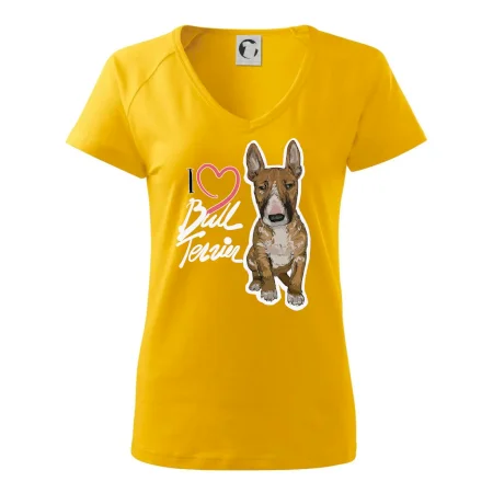 Tričko pre psíčkarov, na ktorom je nápis " I love bul terrier" je vhodný darček pre pšíčkarov, ktorí majú doma práve bull teriéra. Ukáž, že si správny psíčkar a obleč si na seba toto parádne tričko so psom.