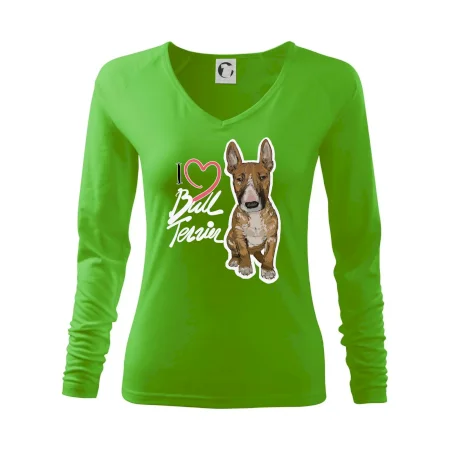 Tričko pre psíčkarov, na ktorom je nápis " I love bul terrier" je vhodný darček pre pšíčkarov, ktorí majú doma práve bull teriéra. Ukáž, že si správny psíčkar a obleč si na seba toto parádne tričko so psom.