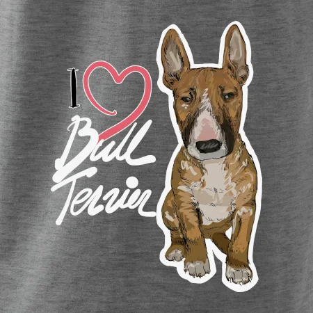 Tričko pre psíčkarov, na ktorom je nápis " I love bul terrier" je vhodný darček pre pšíčkarov, ktorí majú doma práve bull teriéra. Ukáž, že si správny psíčkar a obleč si na seba toto parádne tričko so psom.