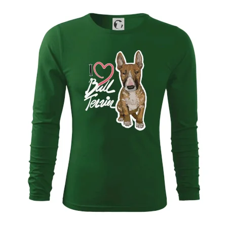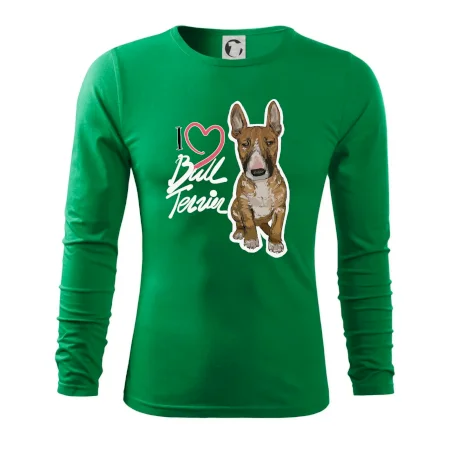 Tričko pre psíčkarov, na ktorom je nápis " I love bul terrier" je vhodný darček pre pšíčkarov, ktorí majú doma práve bull teriéra. Ukáž, že si správny psíčkar a obleč si na seba toto parádne tričko so psom.