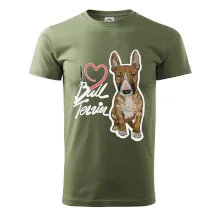 Tričko pre psíčkarov, na ktorom je nápis " I love bul terrier" je vhodný darček pre pšíčkarov, ktorí majú doma práve bull teriéra. Ukáž, že si správny psíčkar a obleč si na seba toto parádne tričko so psom.
