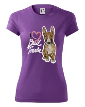 Tričko pre psíčkarov, na ktorom je nápis " I love bul terrier" je vhodný darček pre pšíčkarov, ktorí majú doma práve bull teriéra. Ukáž, že si správny psíčkar a obleč si na seba toto parádne tričko so psom.