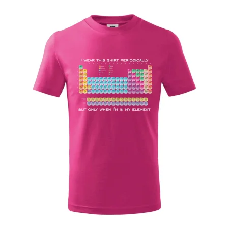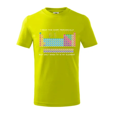 Detské tričko strednej gramáže s bočnými švami. Úzky priekrčník s prídavkom 5% elastanu. Vnútorná časť zadného priekrčníka začistená tkanou páskou. Spevnený ramenný šev.