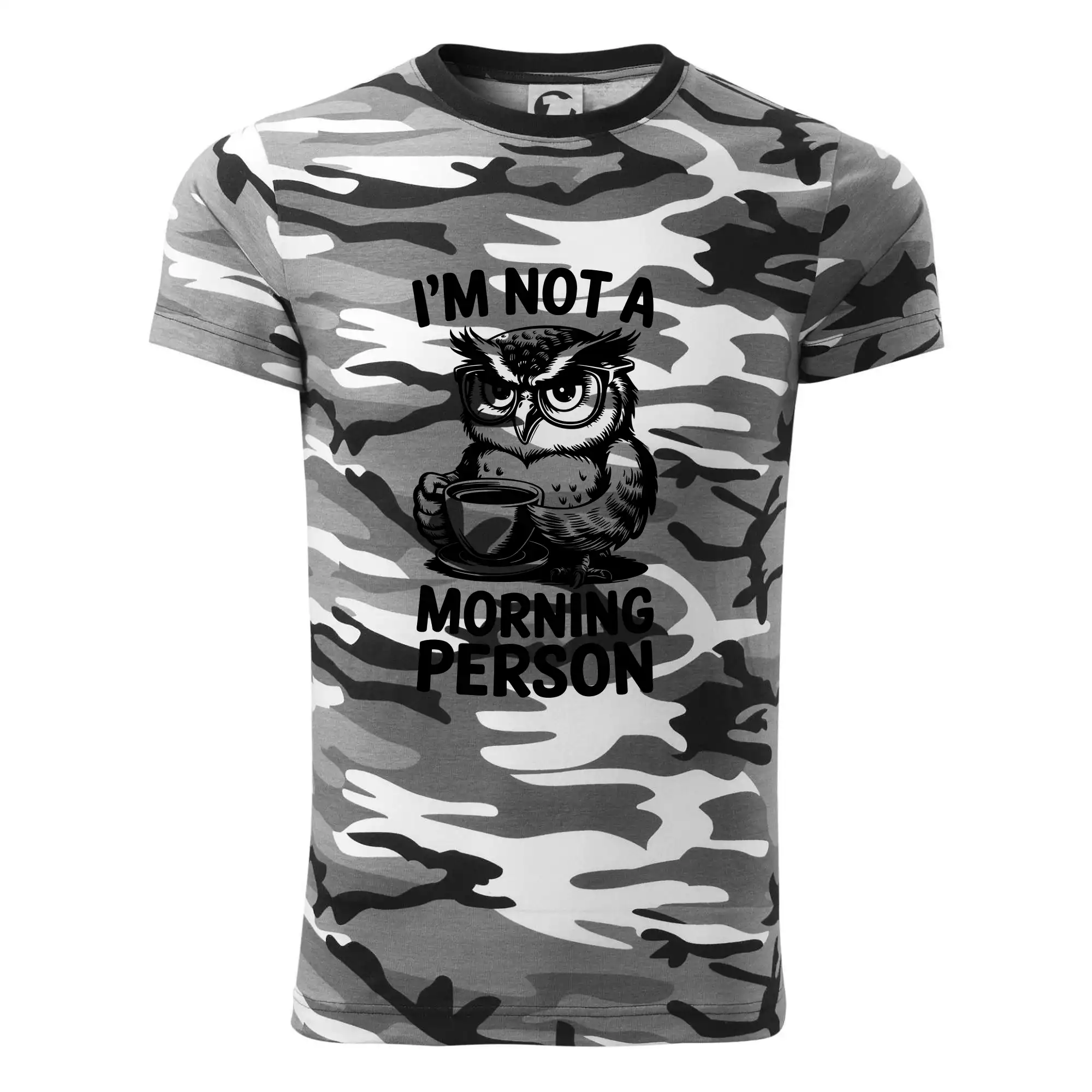 Tričko strednej gramáže vo farbách camouflage. Strih s bočnými švami. Lem priekrčníku z rebrového úpletu s prídavkom 5% elastanu. Vnútorná časť zadného priekrčníka začistená páskou vo farbe camouflage.