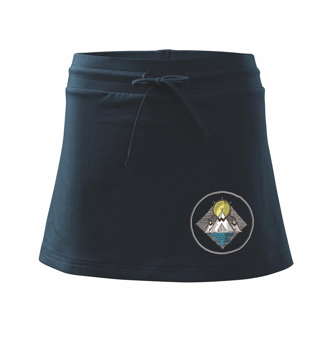 Dámska kraťasová sukňa MALFINI Two in One 604 je perfektnou kombináciou sukne a šortiek, ideálna na šport, voľný čas alebo ležérne nosenie. Vďaka prídavku elastanu si sukňa zachováva tvar a ponúka pohodlie pri pohybe. Krátky strih do tvaru „A“ a široký elastický pás so sťahovacou šnúrkou zabezpečujú voľnosť a prispôsobenie.
