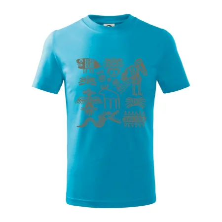 Detské tričko strednej gramáže s bočnými švami. Úzky priekrčník s prídavkom 5% elastanu. Vnútorná časť zadného priekrčníka začistená tkanou páskou. Spevnený ramenný šev.