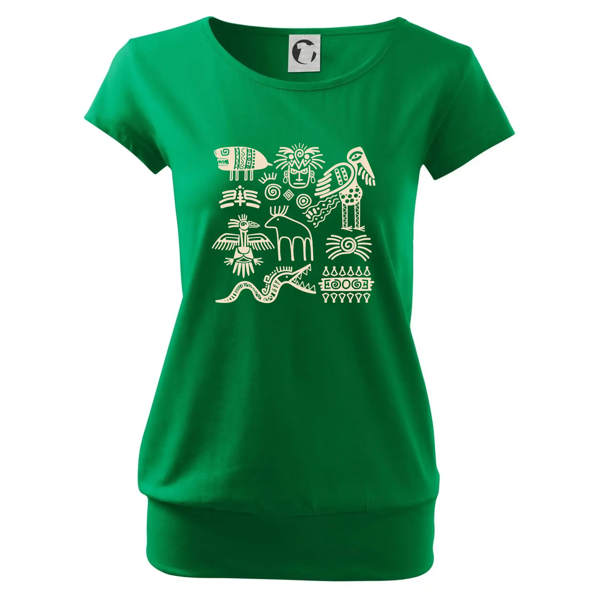 Trendové dámske tričko s veľmi krátkym rukávom, voľnejšieho strihu, v dolnom kraji všité do širokého lemu. Okrúhly priekrčník s úzkym lemom zo zhodného materiálu.