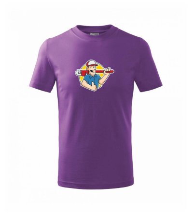 Detské tričko strednej gramáže s bočnými švami. Úzky priekrčník s prídavkom 5% elastanu. Vnútorná časť zadného priekrčníka začistená tkanou páskou. Spevnený ramenný šev.