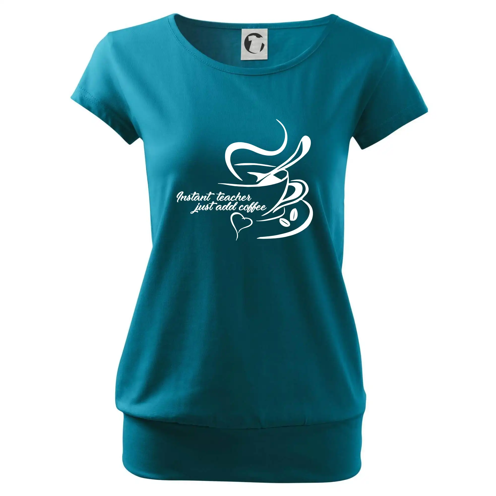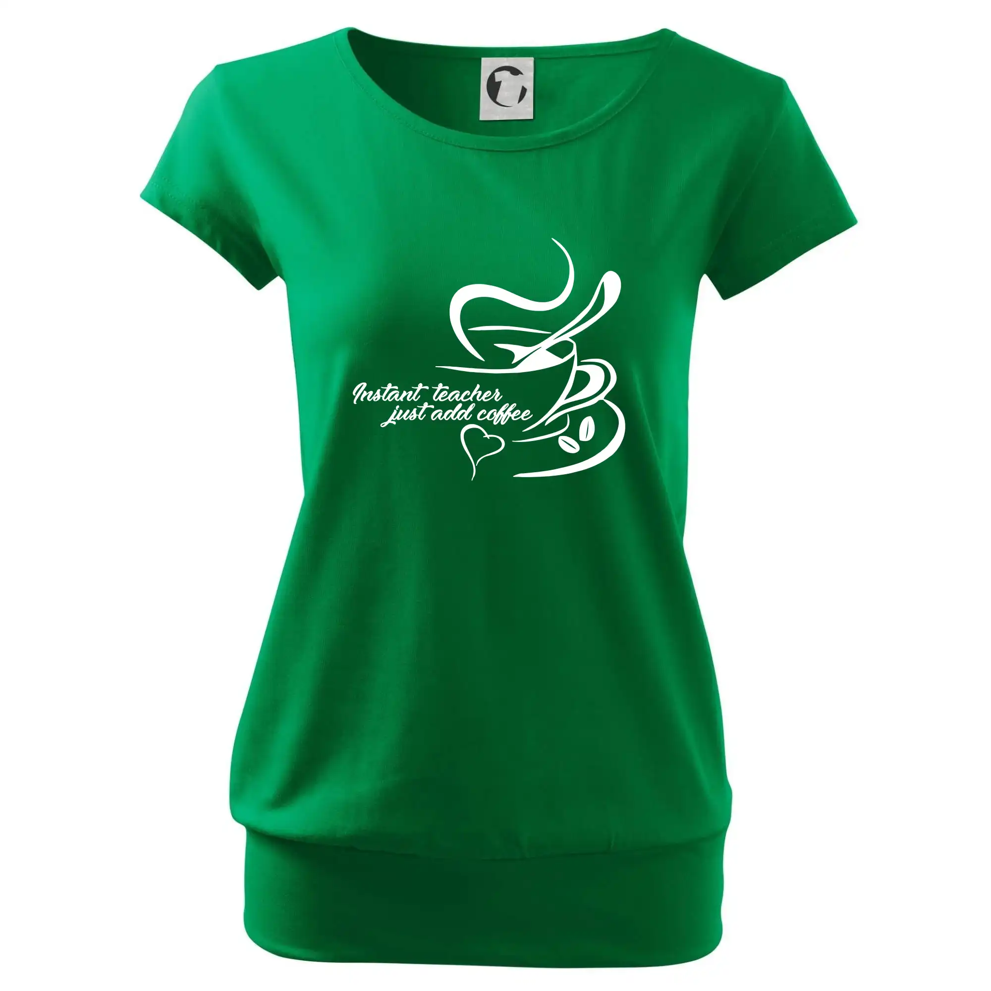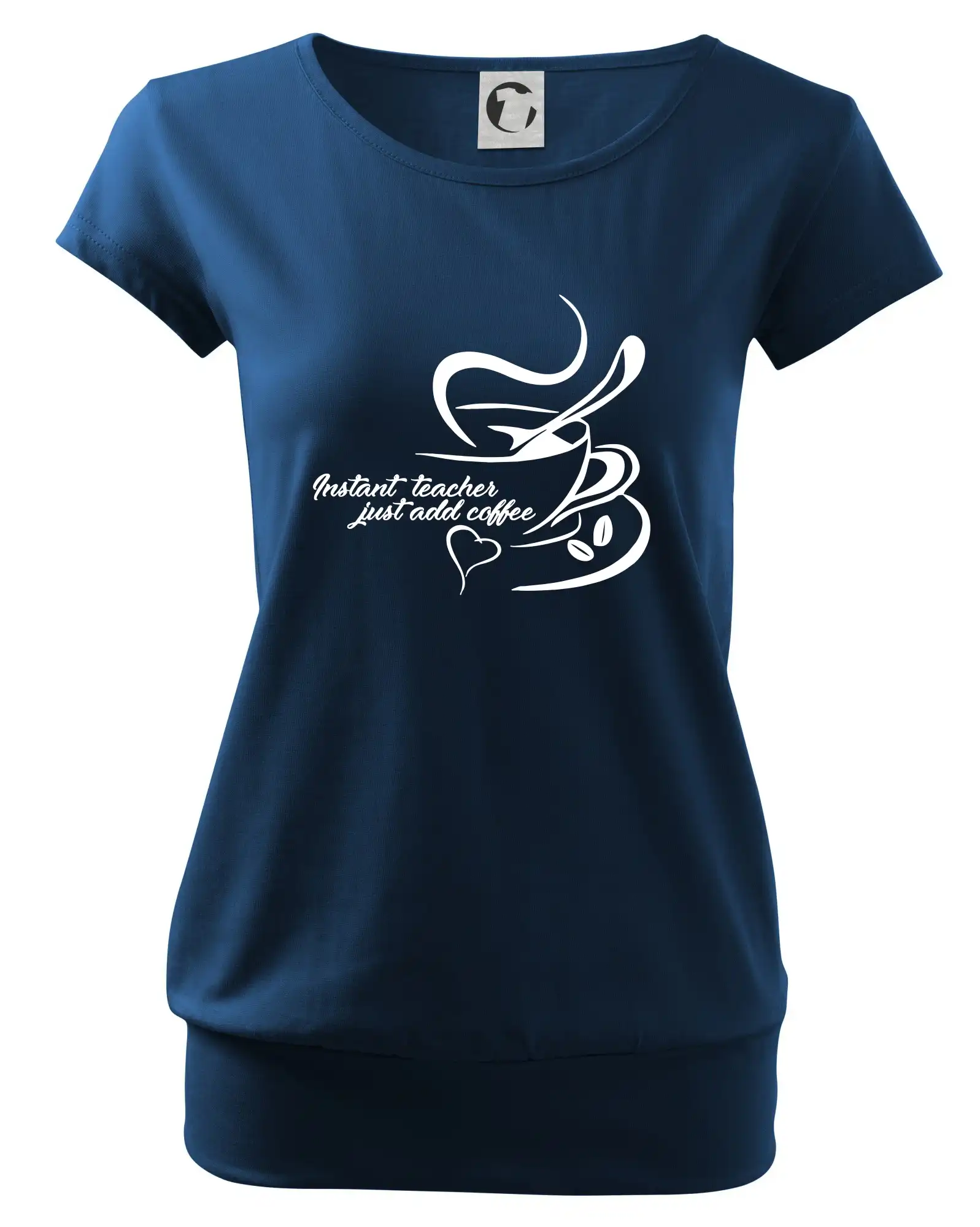Trendové dámske tričko s veľmi krátkym rukávom, voľnejšieho strihu, v dolnom kraji všité do širokého lemu. Okrúhly priekrčník s úzkym lemom zo zhodného materiálu.