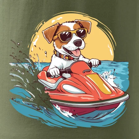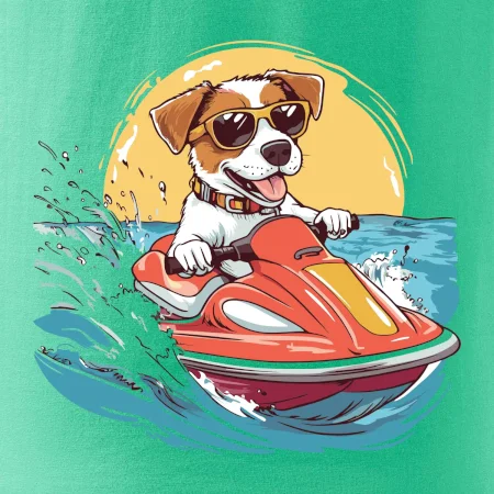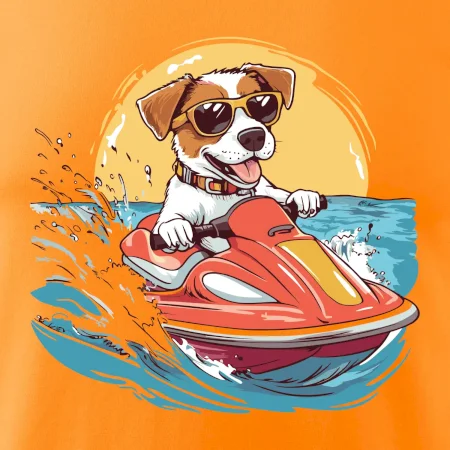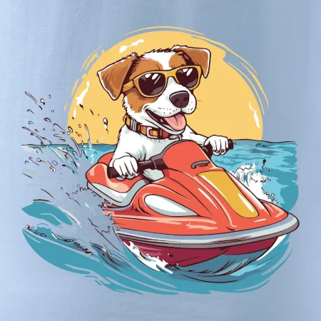 Jack russell teriér na vodnom skútri