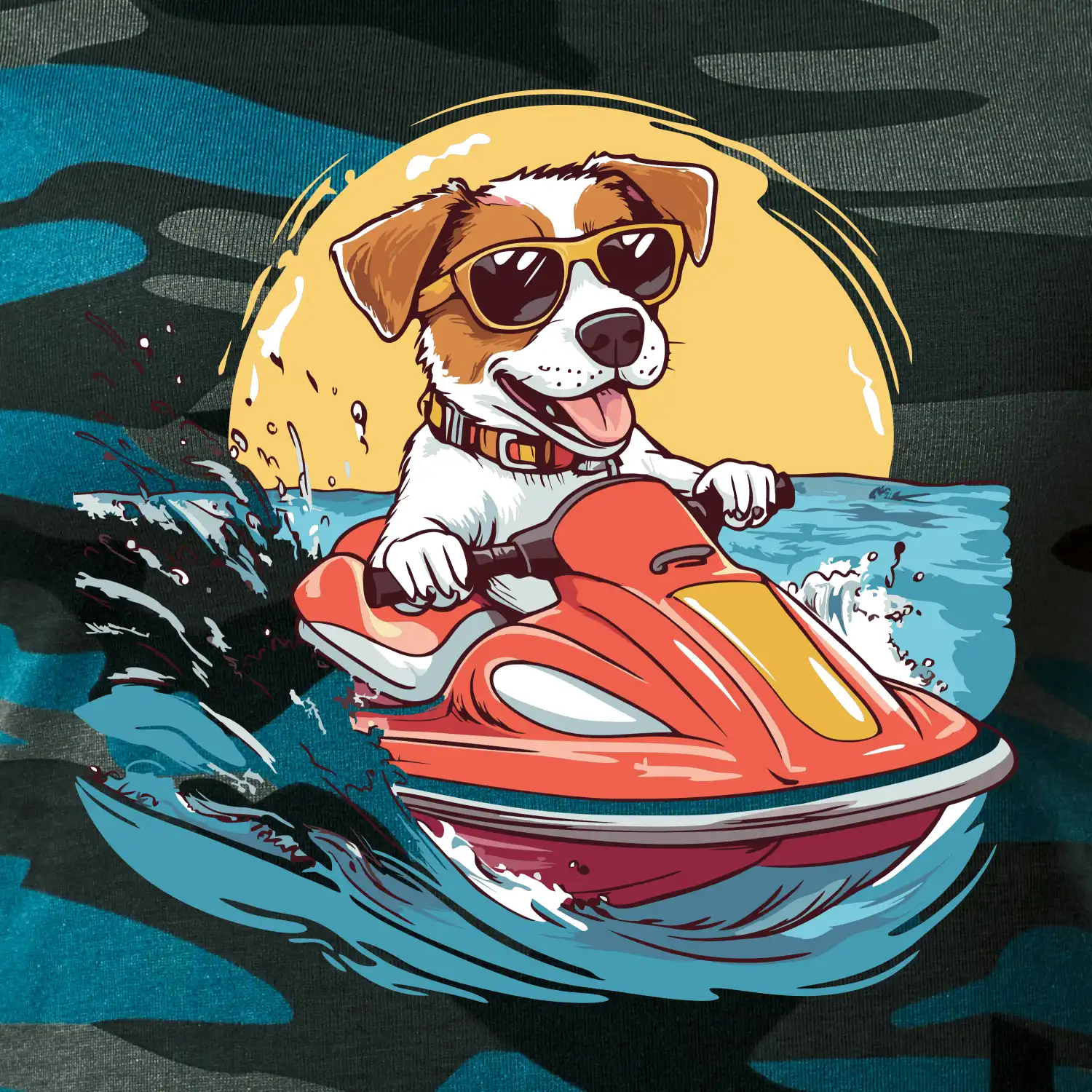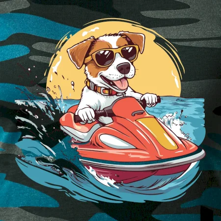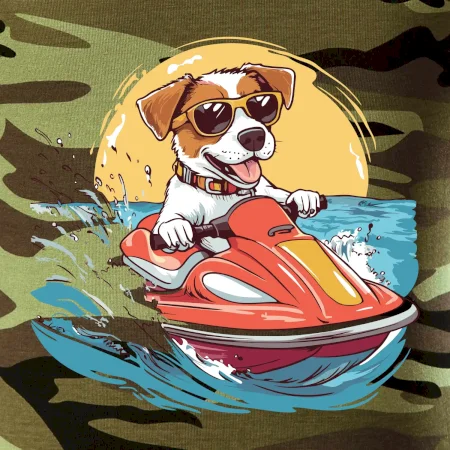 Jack russell teriér na vodnom skútri