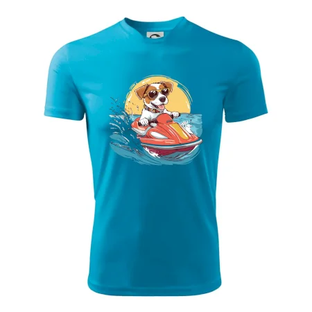 Jack russell teriér na vodnom skútri