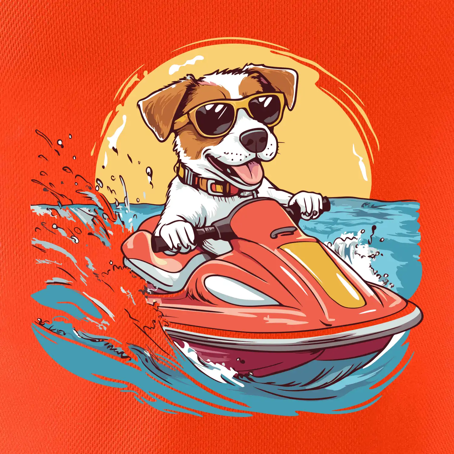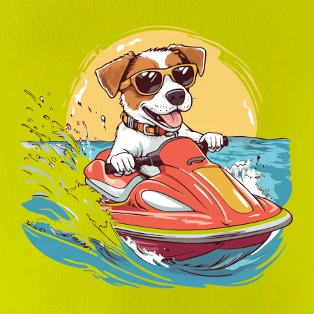 Jack russell teriér na vodnom skútri
