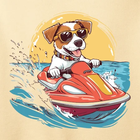 Jack russell teriér na vodnom skútri