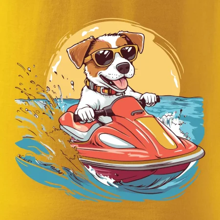 Jack russell teriér na vodnom skútri