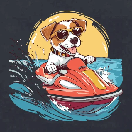 Jack russell teriér na vodnom skútri