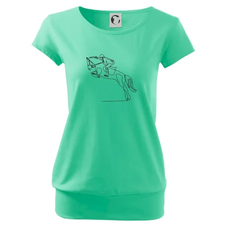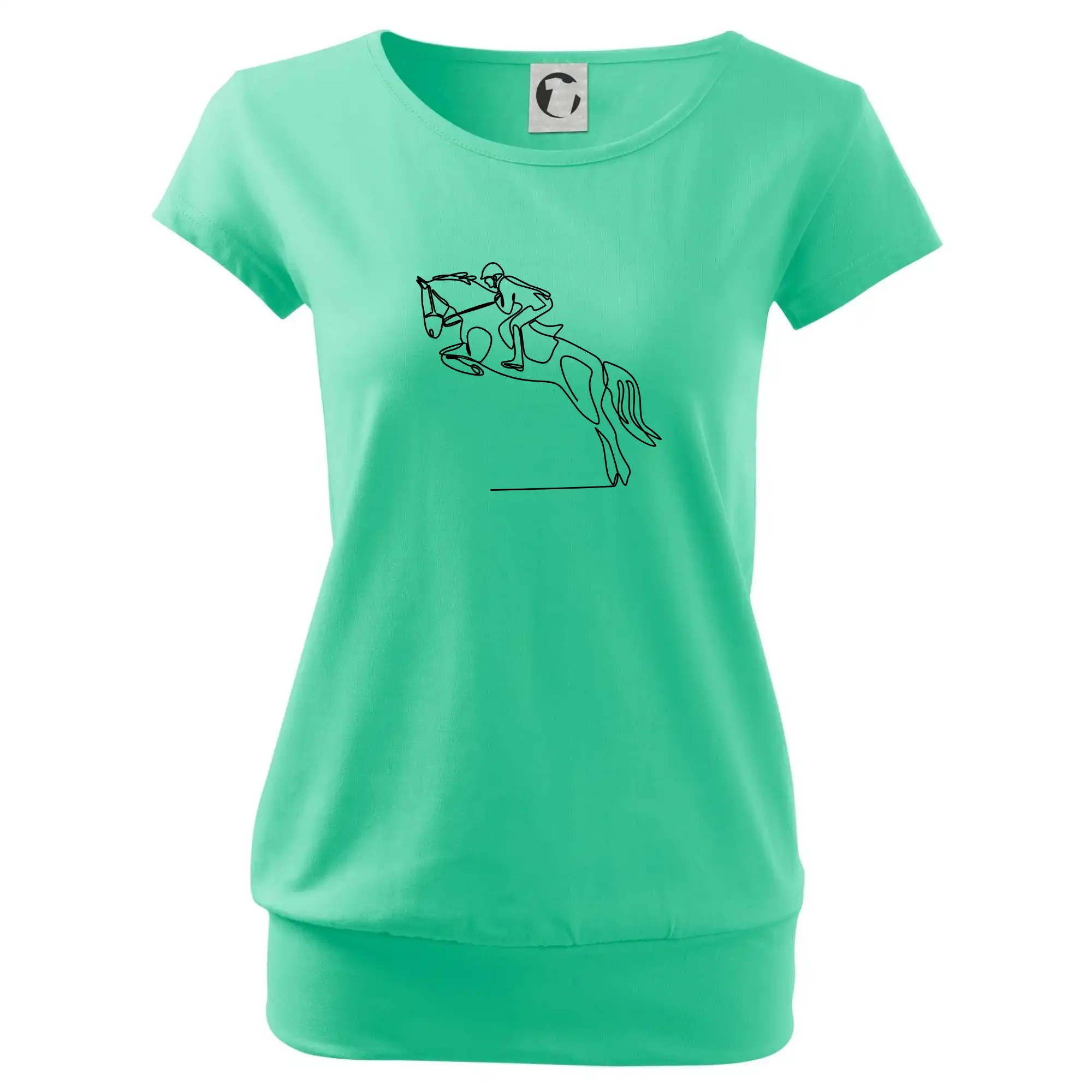 Trendové dámske tričko s veľmi krátkym rukávom, voľnejšieho strihu, v dolnom kraji všité do širokého lemu. Okrúhly priekrčník s úzkym lemom zo zhodného materiálu.