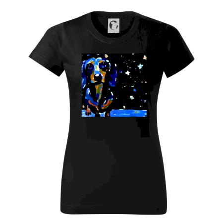 Jazvečík a nočná obloha - olejomaľba