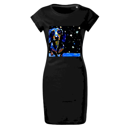 Jazvečík a nočná obloha - olejomaľba