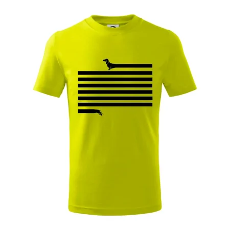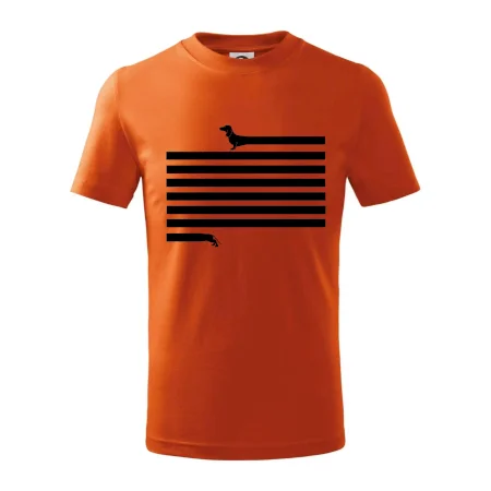 Detské tričko strednej gramáže s bočnými švami. Úzky priekrčník s prídavkom 5% elastanu. Vnútorná časť zadného priekrčníka začistená tkanou páskou. Spevnený ramenný šev.