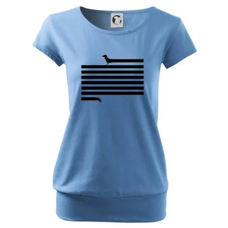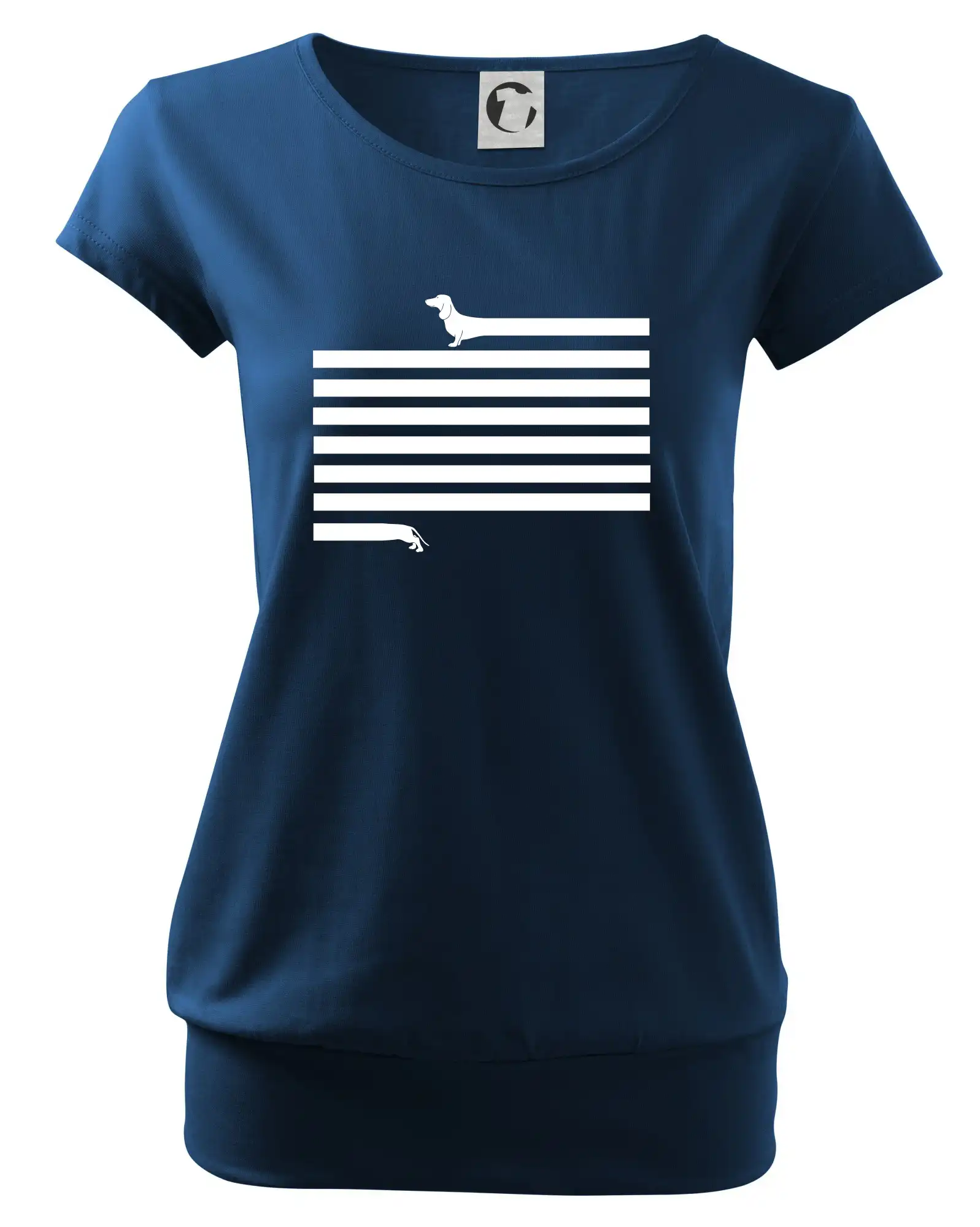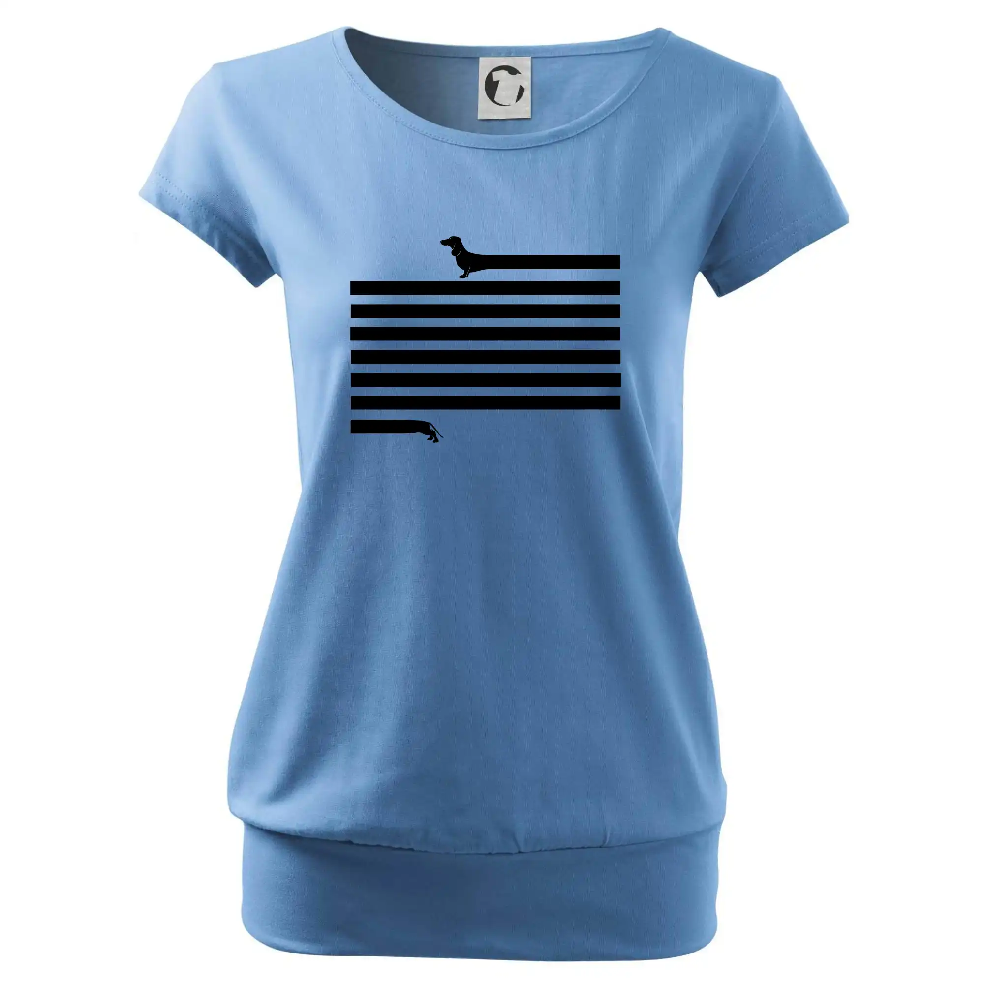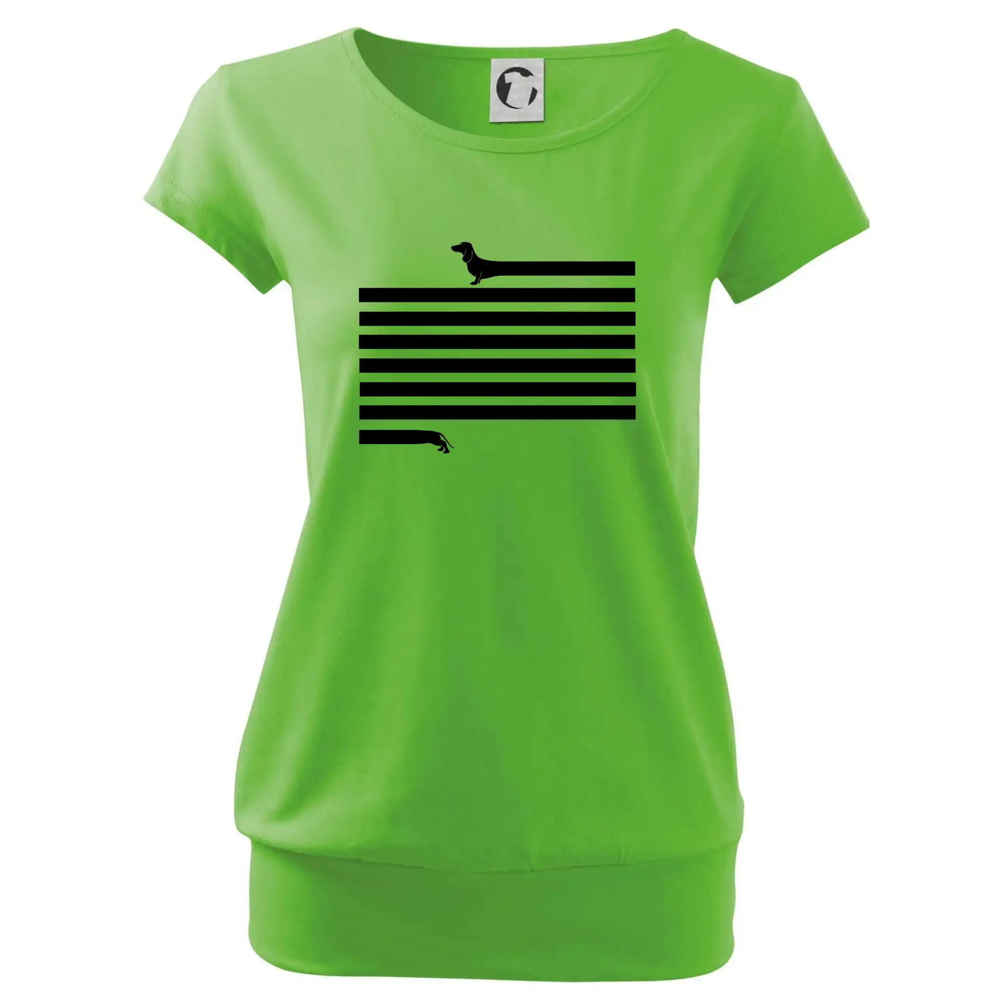 Trendové dámske tričko s veľmi krátkym rukávom, voľnejšieho strihu, v dolnom kraji všité do širokého lemu. Okrúhly priekrčník s úzkym lemom zo zhodného materiálu.