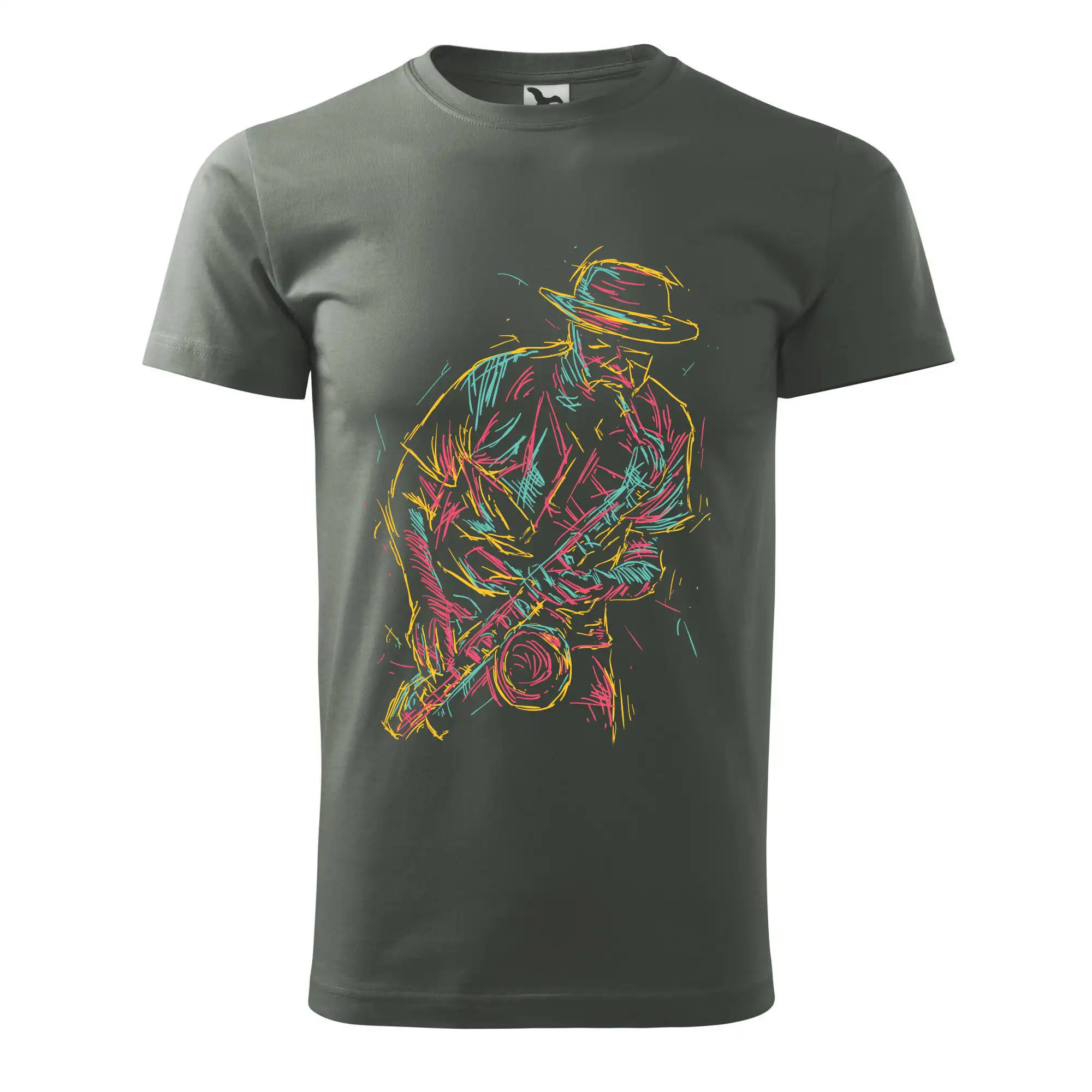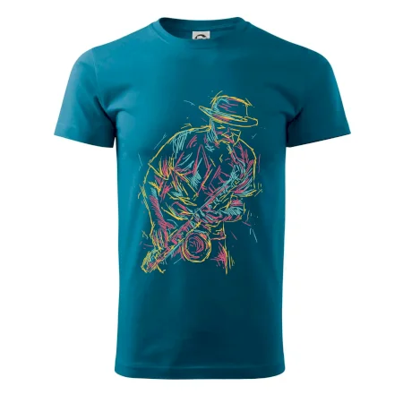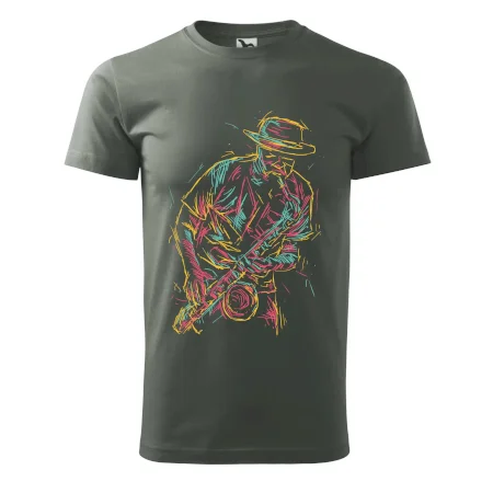 Tričko, na ktorom je kreslený jazzman, poteší každého priaznivcov jazzu. Hudobné tričko so saxofónom je vhodný darček pre saxofonistu. Pokiaľ je saxofón a hudba na každom Tvojom kroku, toto tričko sa k Tebe bude skvelo hodiť! Tričko pre saxofonistu a pravého jazzmana.