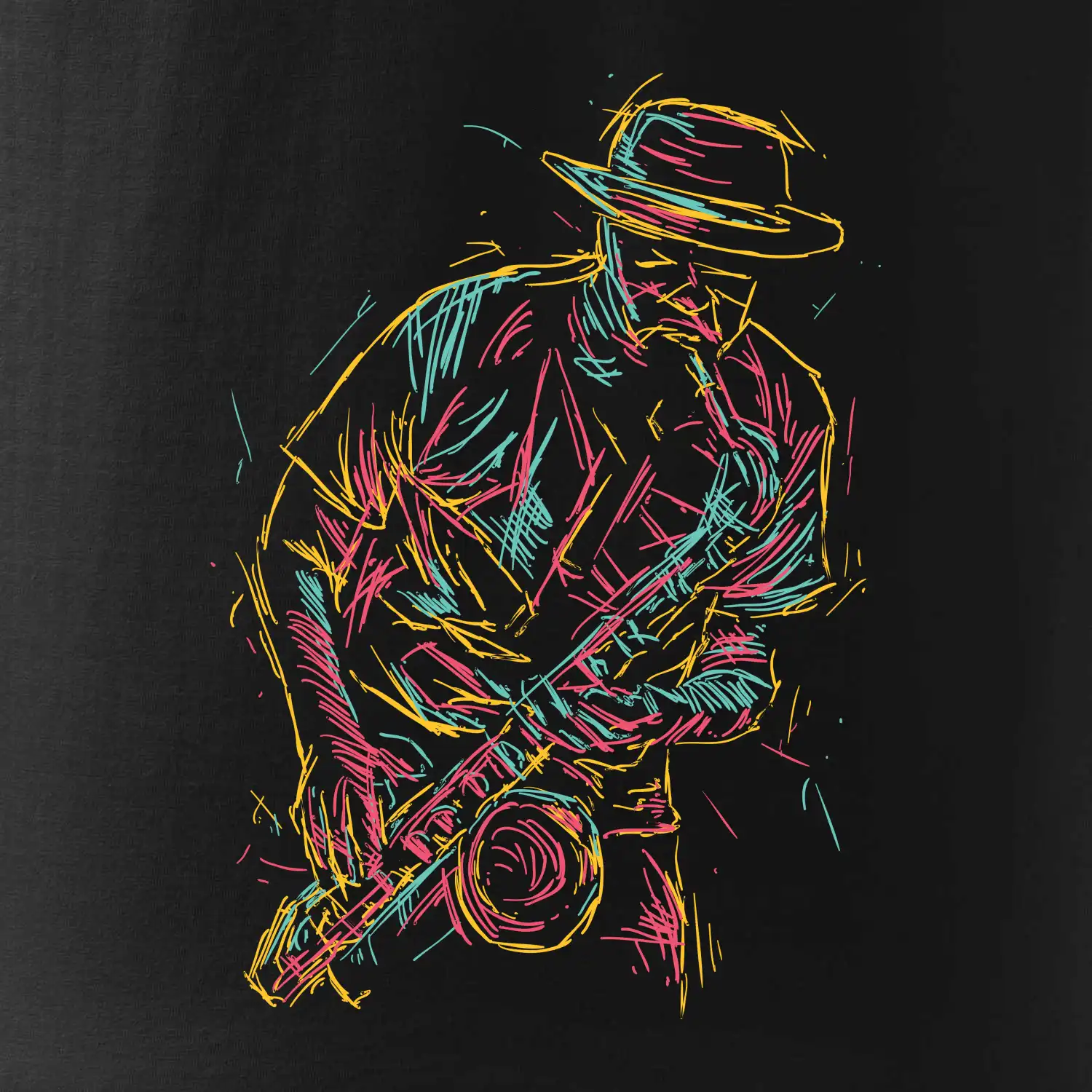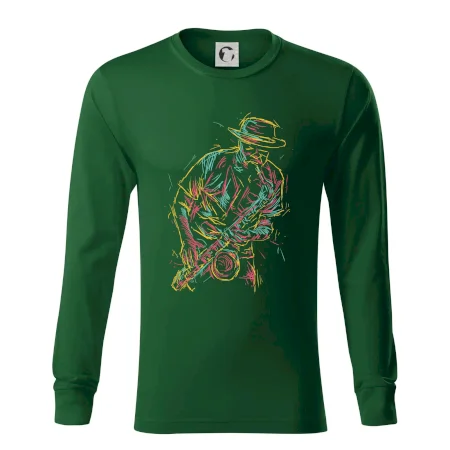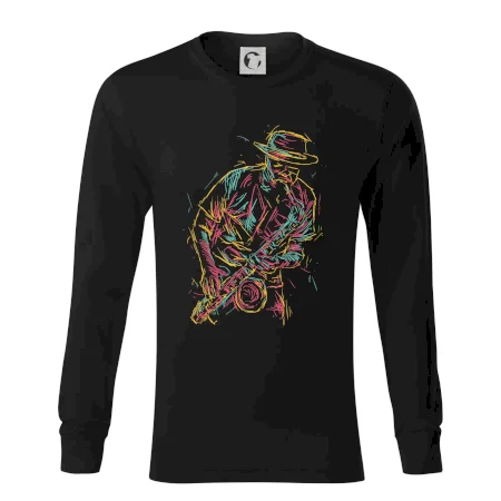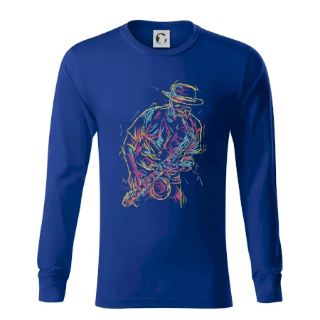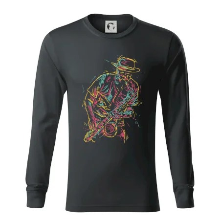Tričko, na ktorom je kreslený jazzman, poteší každého priaznivcov jazzu. Hudobné tričko so saxofónom je vhodný darček pre saxofonistu. Pokiaľ je saxofón a hudba na každom Tvojom kroku, toto tričko sa k Tebe bude skvelo hodiť! Tričko pre saxofonistu a pravého jazzmana.