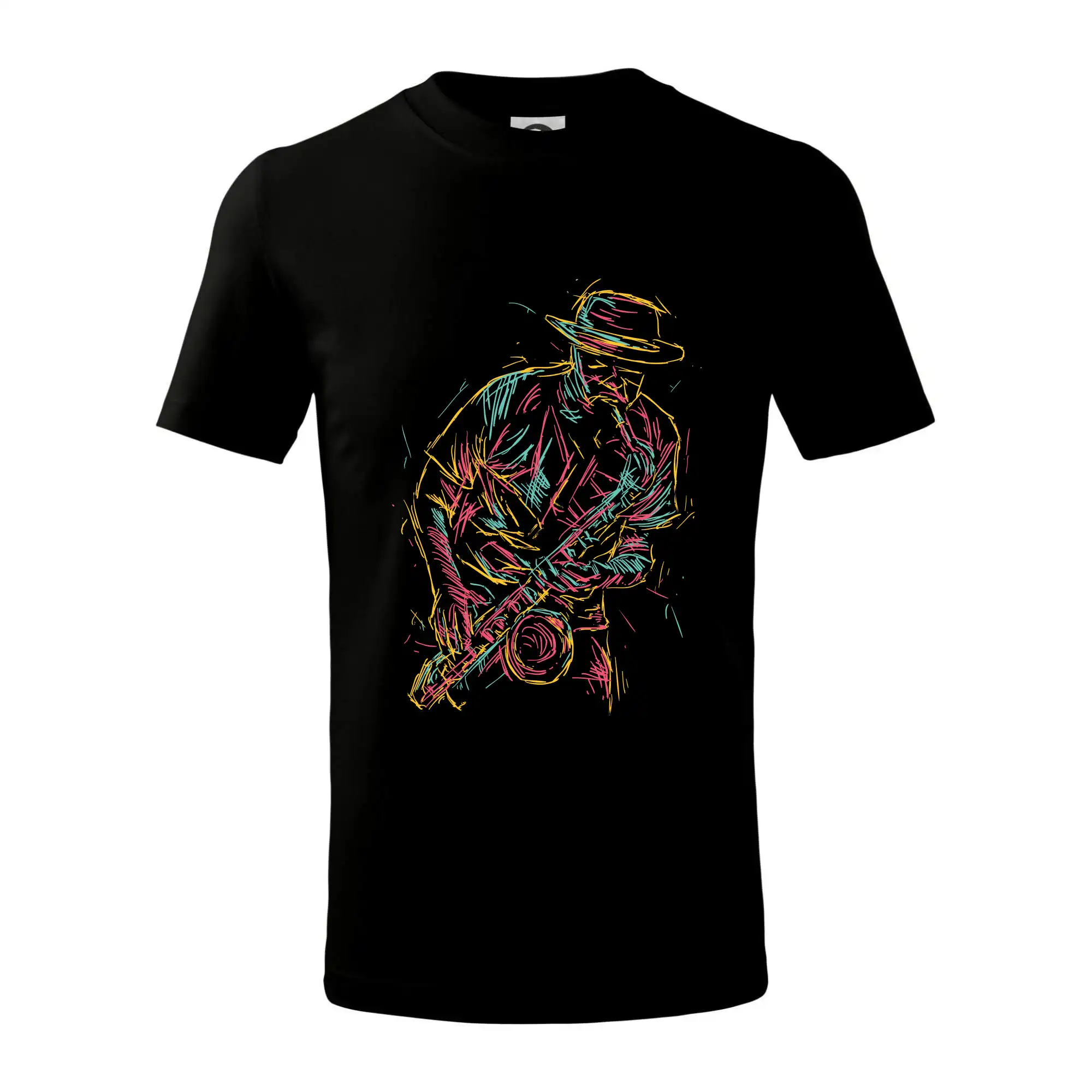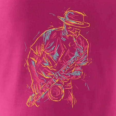Tričko, na ktorom je kreslený jazzman, poteší každého priaznivcov jazzu. Hudobné tričko so saxofónom je vhodný darček pre saxofonistu. Pokiaľ je saxofón a hudba na každom Tvojom kroku, toto tričko sa k Tebe bude skvelo hodiť! Tričko pre saxofonistu a pravého jazzmana.