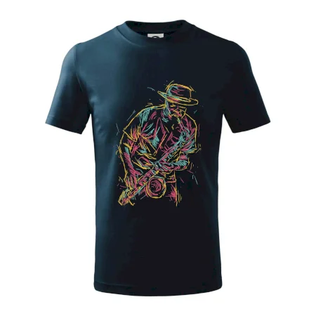Tričko, na ktorom je kreslený jazzman, poteší každého priaznivcov jazzu. Hudobné tričko so saxofónom je vhodný darček pre saxofonistu. Pokiaľ je saxofón a hudba na každom Tvojom kroku, toto tričko sa k Tebe bude skvelo hodiť! Tričko pre saxofonistu a pravého jazzmana.