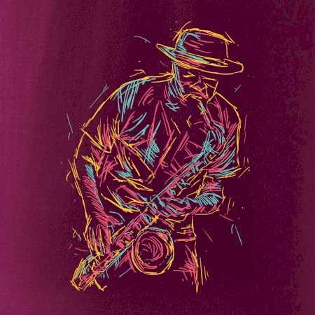 Tričko, na ktorom je kreslený jazzman, poteší každého priaznivcov jazzu. Hudobné tričko so saxofónom je vhodný darček pre saxofonistu. Pokiaľ je saxofón a hudba na každom Tvojom kroku, toto tričko sa k Tebe bude skvelo hodiť! Tričko pre saxofonistu a pravého jazzmana.