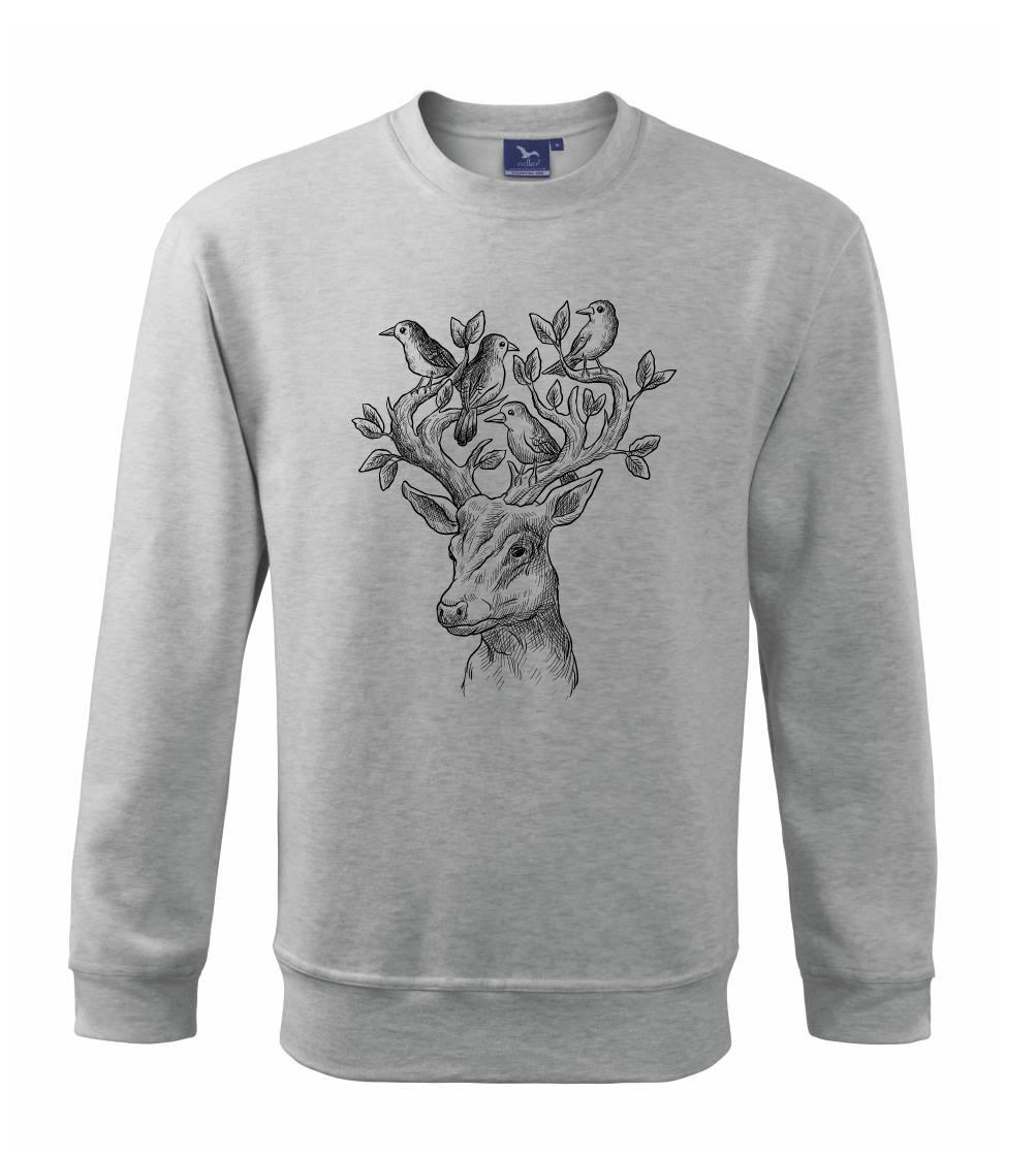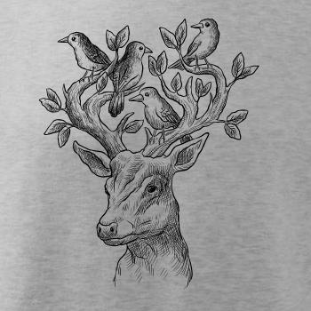 Tričko s jeleňom, ktorý ma na paroží celý svet. Jeleň na tričku je vhodný darček pre milovníka prírody. Jelenie parohy zdobí aj nejaký ten vtáčik. A kto by nechcel mať na tričku takéto pekné zviera?