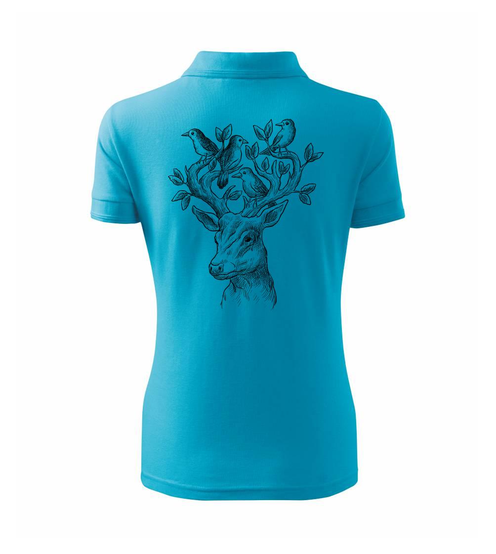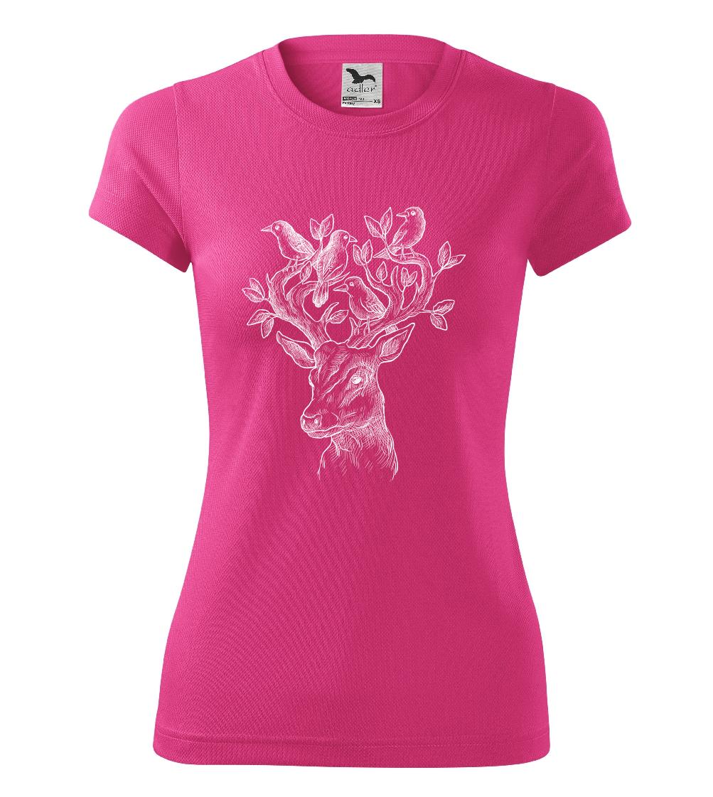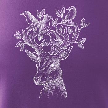 Tričko s jeleňom, ktorý ma na paroží celý svet. Jeleň na tričku je vhodný darček pre milovníka prírody. Jelenie parohy zdobí aj nejaký ten vtáčik. A kto by nechcel mať na tričku takéto pekné zviera?