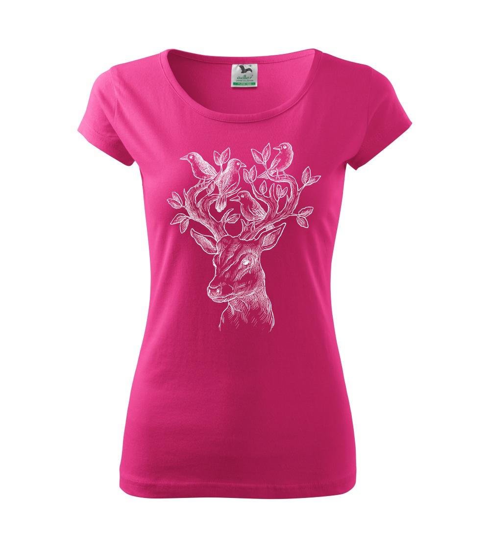 Tričko s jeleňom, ktorý ma na paroží celý svet. Jeleň na tričku je vhodný darček pre milovníka prírody. Jelenie parohy zdobí aj nejaký ten vtáčik. A kto by nechcel mať na tričku takéto pekné zviera?