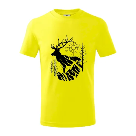 Detské tričko strednej gramáže s bočnými švami. Úzky priekrčník s prídavkom 5% elastanu. Vnútorná časť zadného priekrčníka začistená tkanou páskou. Spevnený ramenný šev.