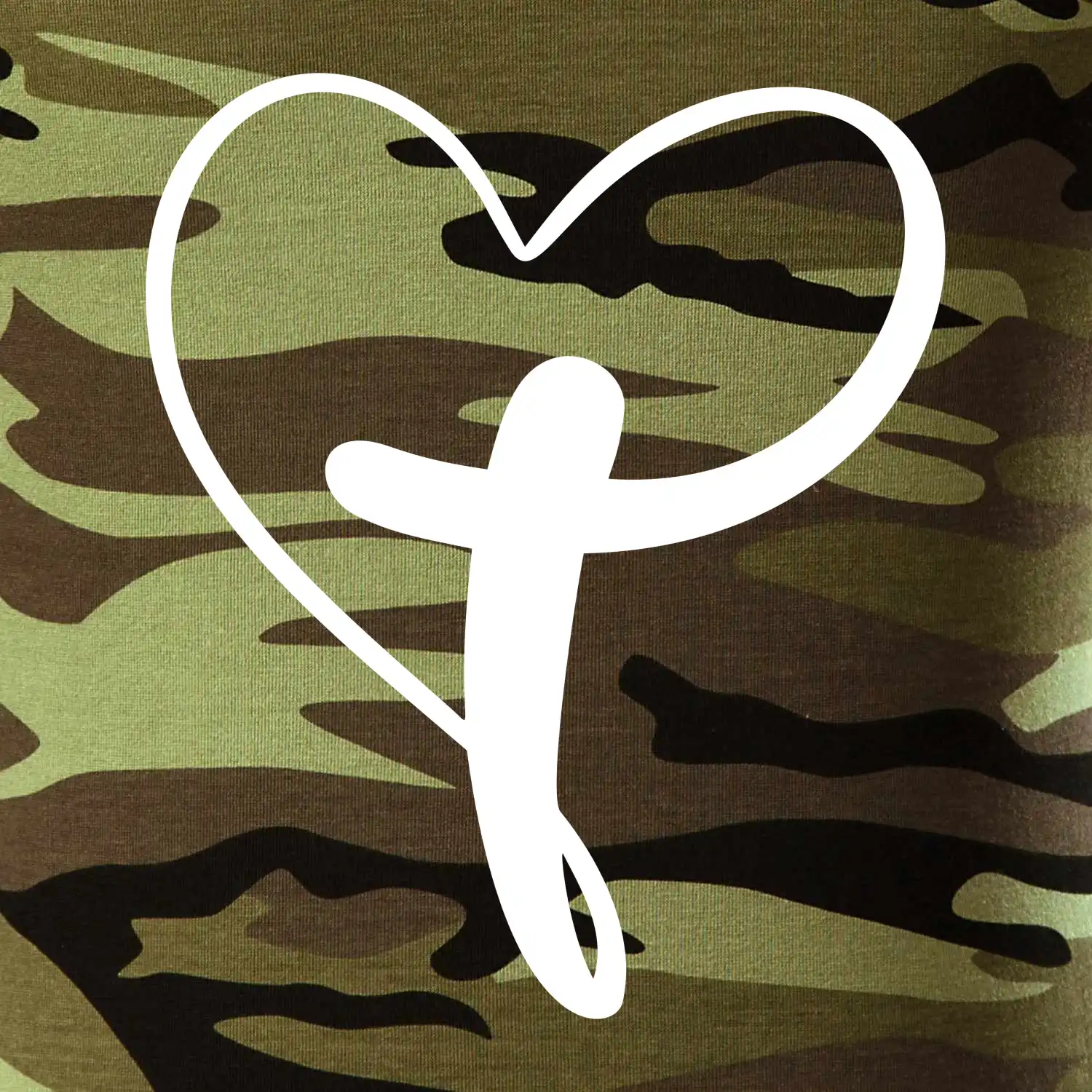 Tričko strednej gramáže vo farbách camouflage. Strih s bočnými švami. Lem priekrčníku z rebrového úpletu s prídavkom 5% elastanu. Vnútorná časť zadného priekrčníka začistená páskou vo farbe camouflage.