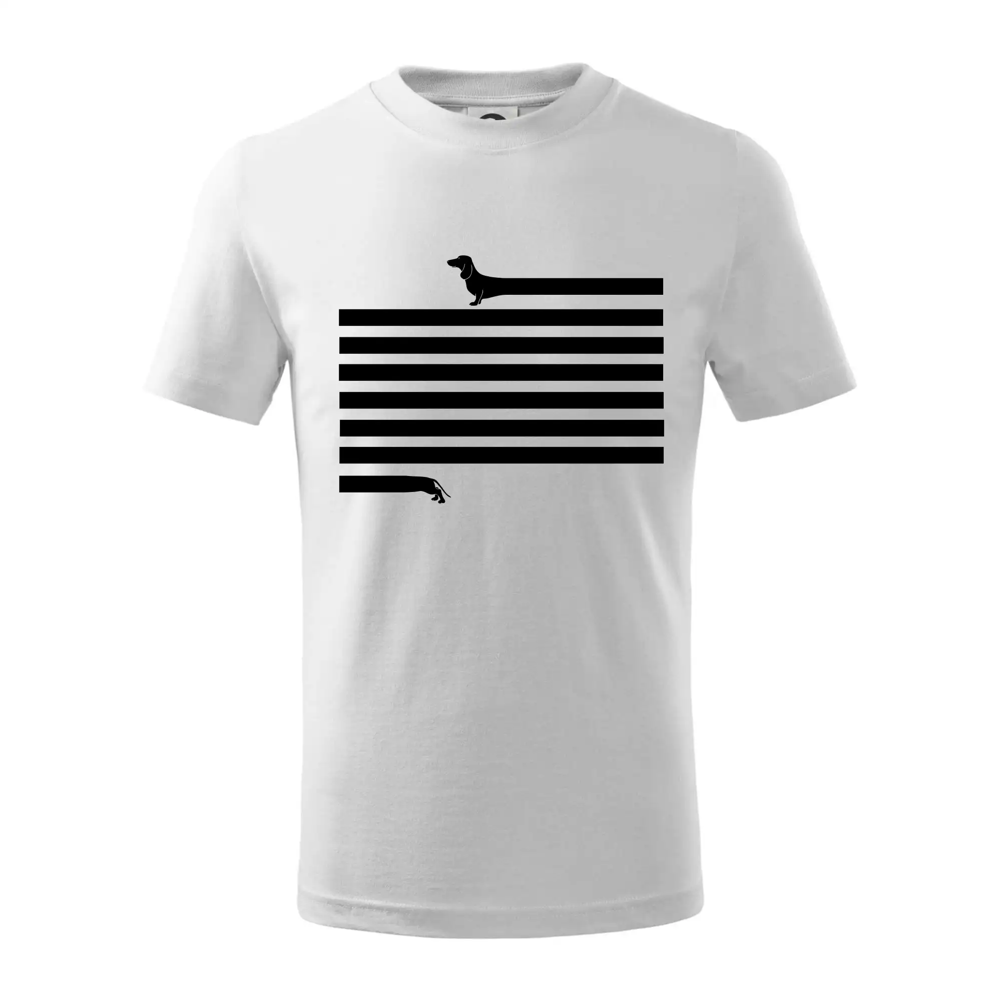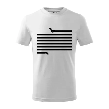 Detské tričko strednej gramáže s bočnými švami. Úzky priekrčník s prídavkom 5% elastanu. Vnútorná časť zadného priekrčníka začistená tkanou páskou. Spevnený ramenný šev.
