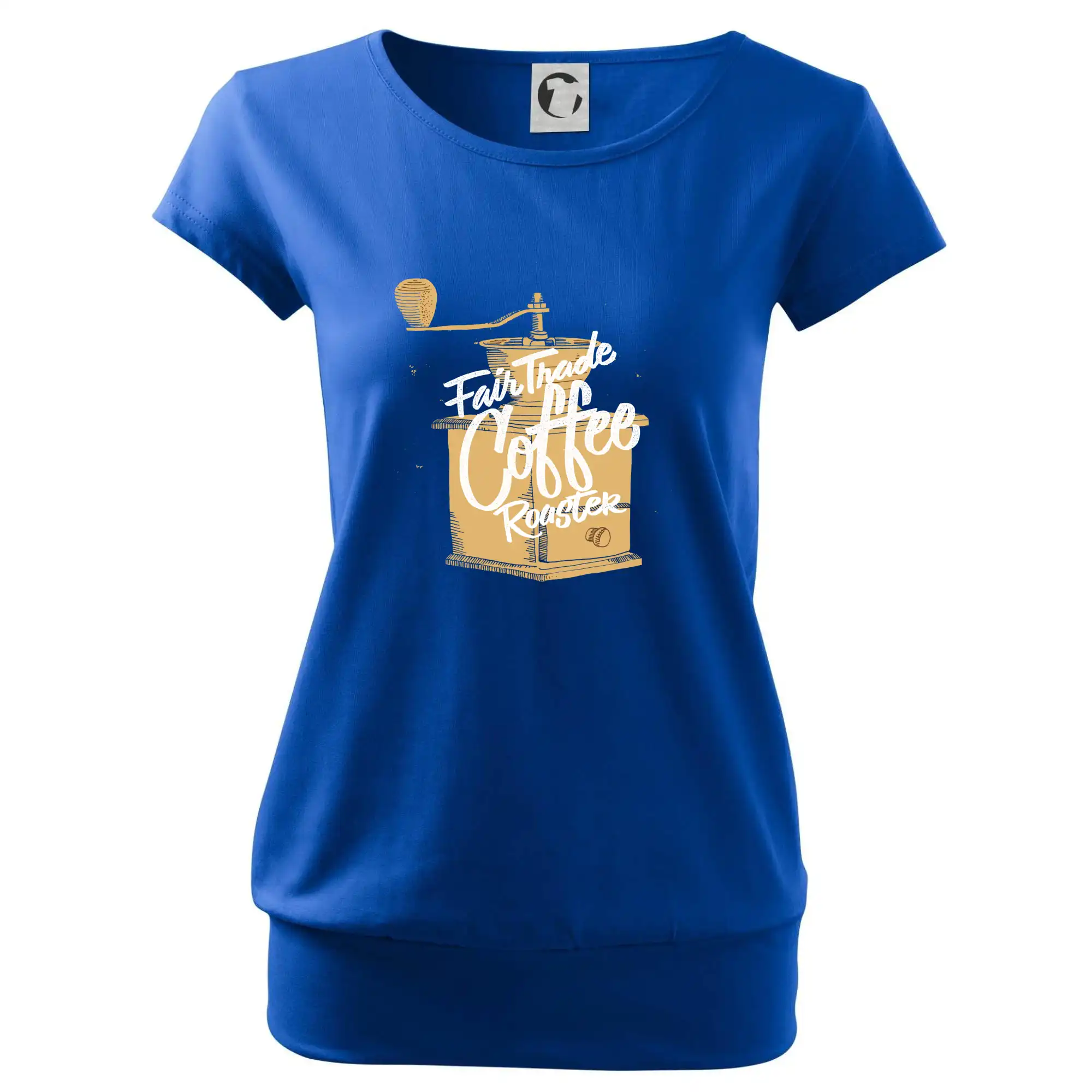Trendové dámske tričko s veľmi krátkym rukávom, voľnejšieho strihu, v dolnom kraji všité do širokého lemu. Okrúhly priekrčník s úzkym lemom zo zhodného materiálu.