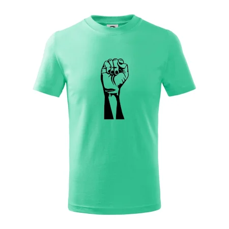 Detské tričko strednej gramáže s bočnými švami. Úzky priekrčník s prídavkom 5% elastanu. Vnútorná časť zadného priekrčníka začistená tkanou páskou. Spevnený ramenný šev.
