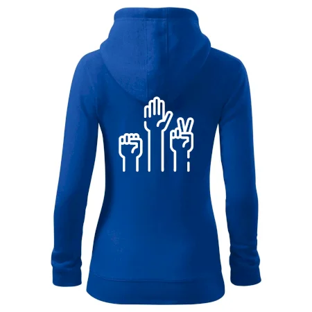 Dámska mikina MALFINI Trendy Zipper 411 spája moderný vzhľad s každodennou praktickosťou. Jej ľahko vypasovaný strih s bočnými švami zvýrazňuje ženskú siluetu, zatiaľ čo celoprepínací zips a kapucňa so sťahovacou šnúrkou dodávajú ležérny nádych. Našité vrecká typu „klokanka“ ponúkajú dostatok priestoru na drobnosti. Materiál s počesanou vnútornou stranou zabezpečuje mäkkosť a teplo vďaka zmesi bavlny a polyesteru.