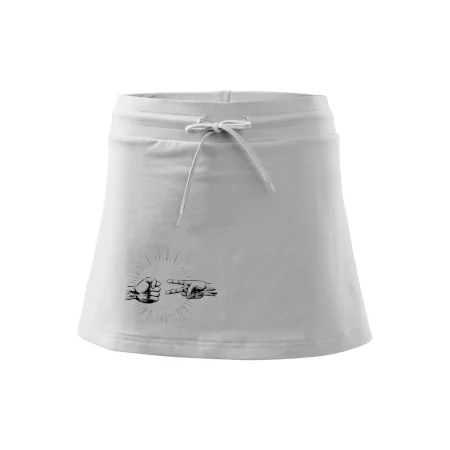 Dámska kraťasová sukňa MALFINI Two in One 604 je perfektnou kombináciou sukne a šortiek, ideálna na šport, voľný čas alebo ležérne nosenie. Vďaka prídavku elastanu si sukňa zachováva tvar a ponúka pohodlie pri pohybe. Krátky strih do tvaru „A“ a široký elastický pás so sťahovacou šnúrkou zabezpečujú voľnosť a prispôsobenie.