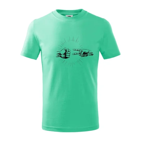 Detské tričko strednej gramáže s bočnými švami. Úzky priekrčník s prídavkom 5% elastanu. Vnútorná časť zadného priekrčníka začistená tkanou páskou. Spevnený ramenný šev.