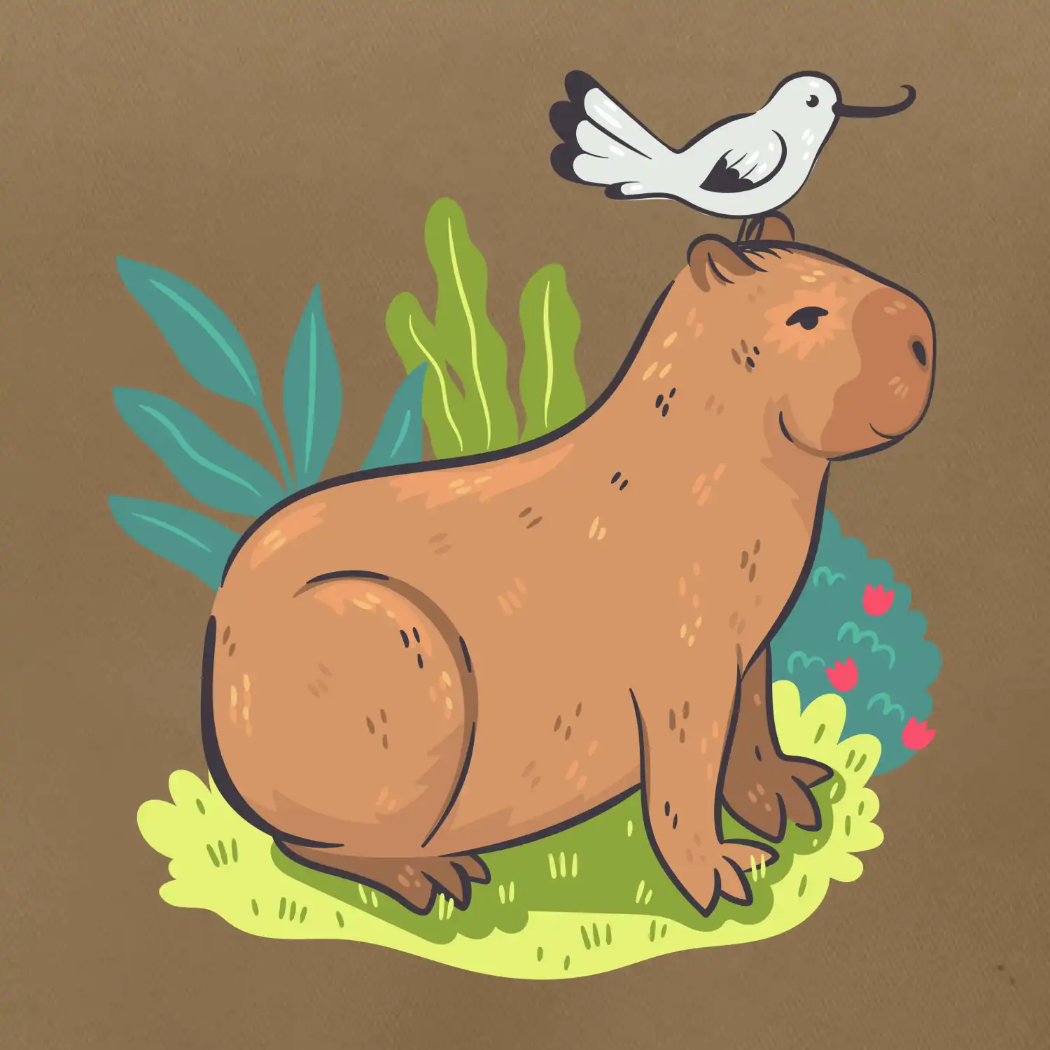 Kapybara a vtáčik