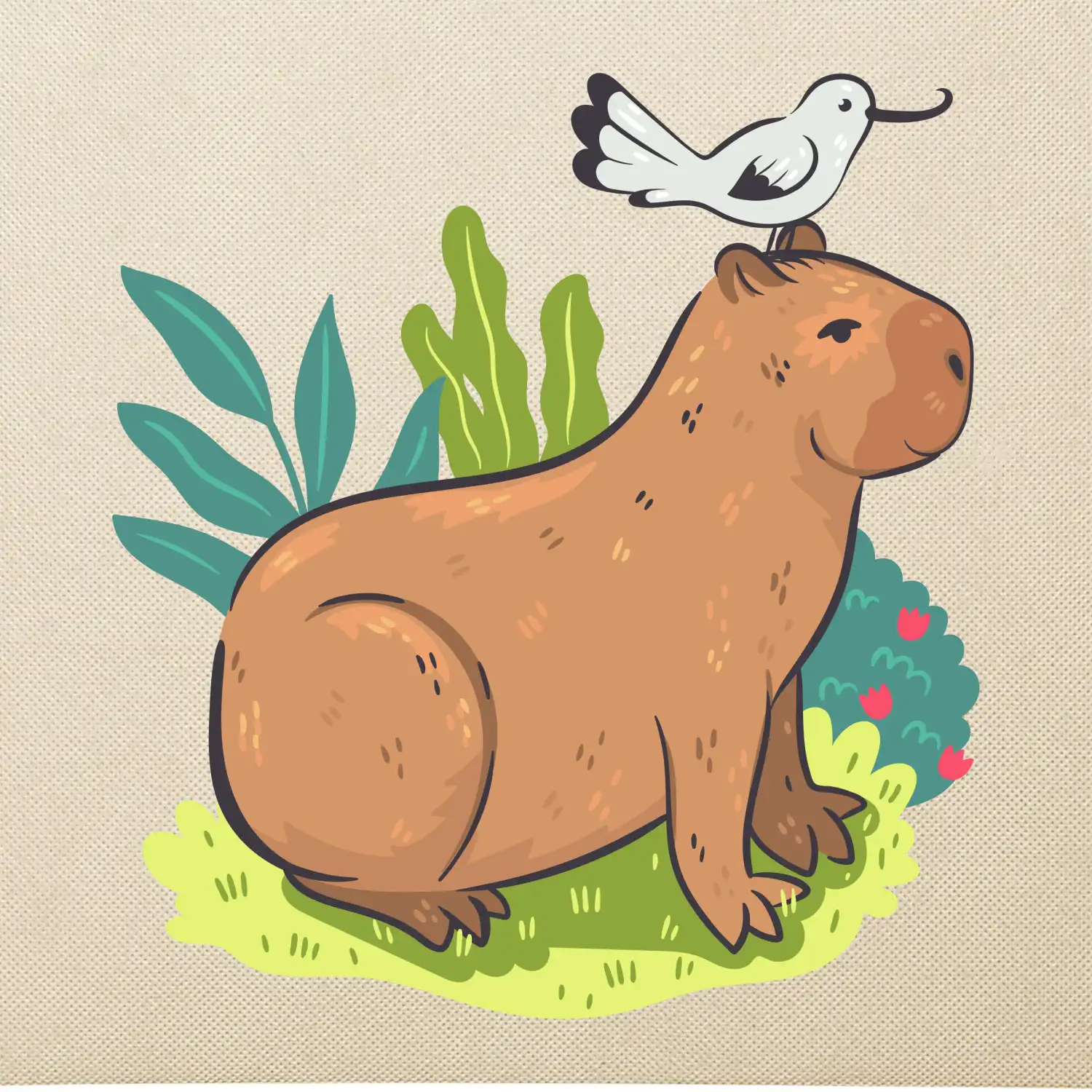 Kapybara a vtáčik