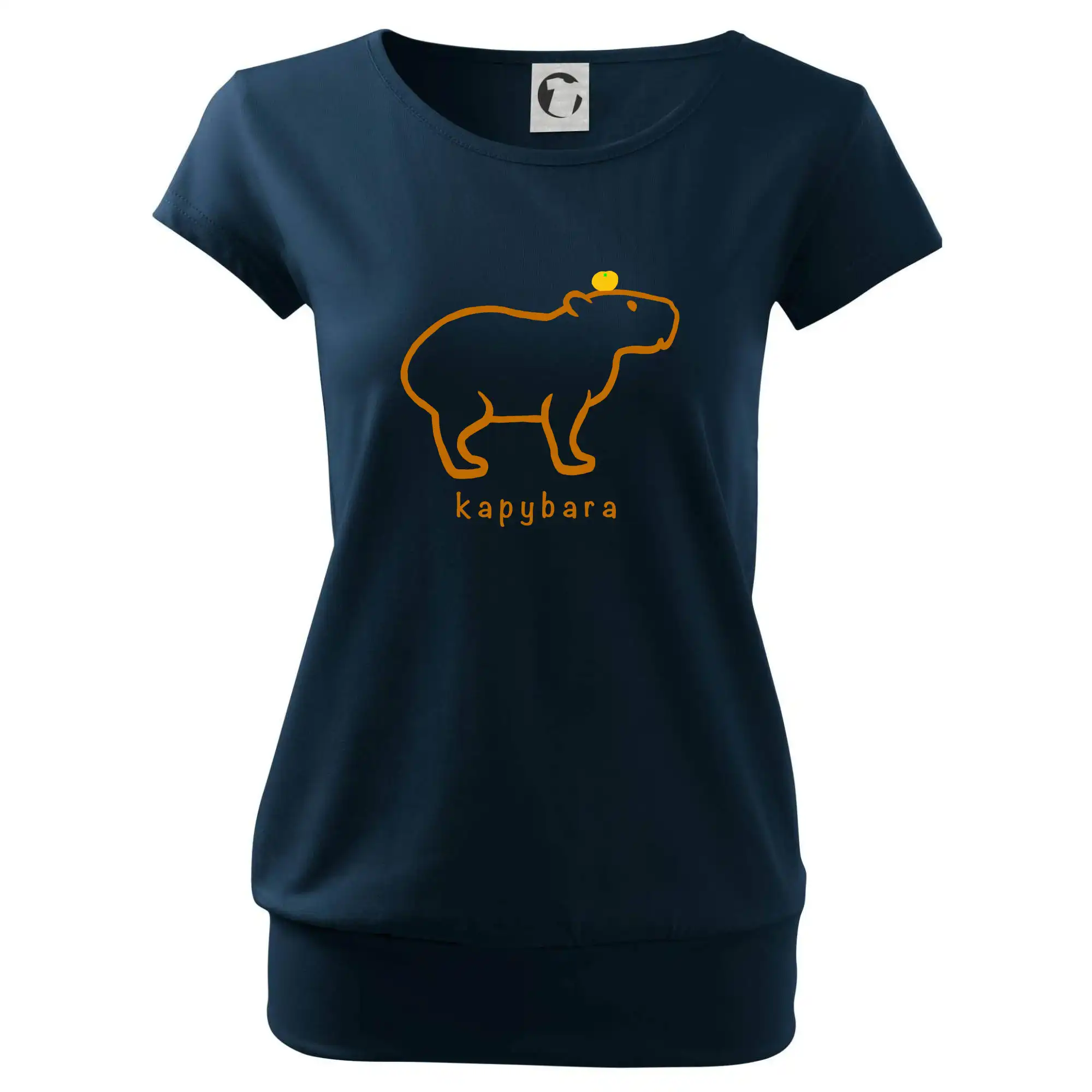 Trendové dámske tričko s veľmi krátkym rukávom, voľnejšieho strihu, v dolnom kraji všité do širokého lemu. Okrúhly priekrčník s úzkym lemom zo zhodného materiálu.