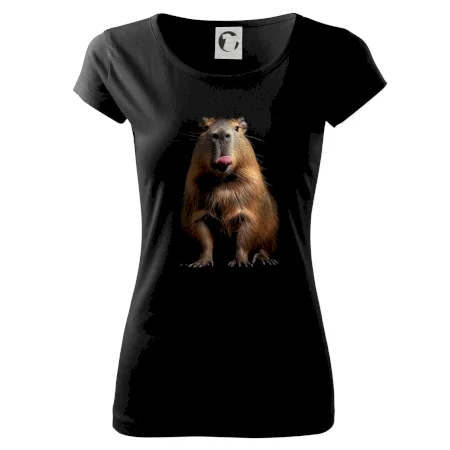 Kapybara s vypláznutým jazykom čierna fotka
