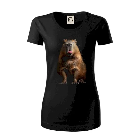 Kapybara s vypláznutým jazykom čierna fotka
