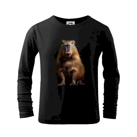 Kapybara s vypláznutým jazykom čierna fotka