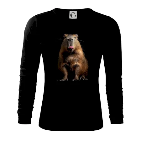 Kapybara s vypláznutým jazykom čierna fotka